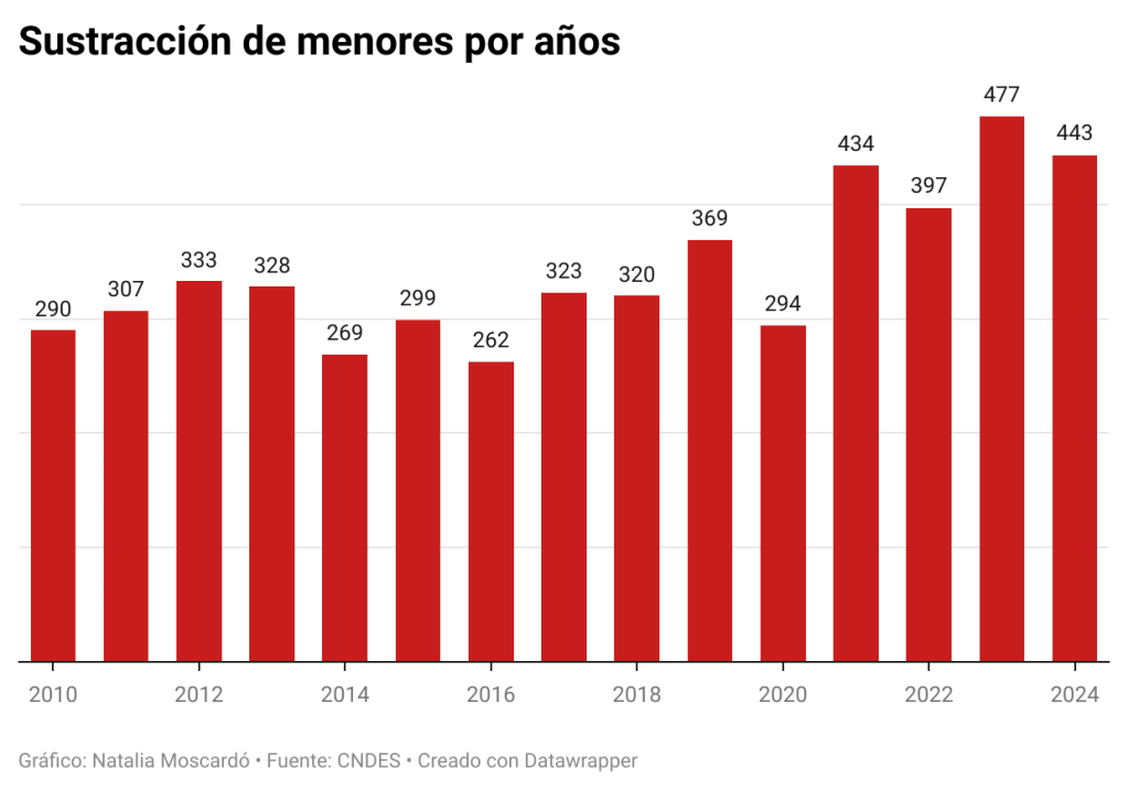 A pesar del elevado número de diligencias por sustracción de menores en 2023 — 1.321 casos registrados—, solo 11 fueron catalogadas como graves y apenas 36 terminaron en condena. La diferencia entre la cifra de denuncias y sentencias expone la dificultad de llevar estos casos hasta una resolución judicial, evidenciando un fenómeno más extendido de lo que reflejan las estadísticas penales. La mayoría de estos conflictos, marcados por tensiones familiares, terminan diluyéndose entre trámites judiciales y acuerdos extrajudiciales, dejando al descubierto los retos del sistema para proteger a los menores.